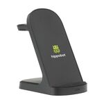 Sturdy 3-in-1 charging stand made from recycled ABS. The ideal wireless charger for quickly charging your phone, earphones and smartwatch simultaneously. A robust stand with a non-slip bottom and an indicator light. Input: Type C DC9V/3A. Wireless Output: 15 W. Wireless Output smartwatch: 2W. Wireless Output earphones: 3W. Includes a rTPE charging cable Type-C connection and user manual. RCS certified. Total recycled material: 30%. Each item is supplied in an individual brown cardboard box.