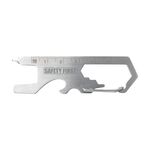 Pocket-sized stainless steel multitool. With 8 functions: bottle opener, carabiner, Phillips screwdriver, flat-blade screwdriver, Allen key in 3 sizes, ruler (5 cm). Small in size, so it’s very easy to attach to a keychain.